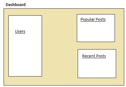 Here, Users, Popular Posts, and Recent Posts are 3 different views displayed at the same time on a single page. Each will have a separate controller.