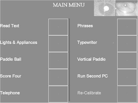 The user calls up the desired program by looking at the Eyegaze key next to his program choice.