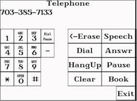 The telephone program allows the user to place and receive calls. Frequently used numbers are stored in a telephone “book”. Non-verbal users may access the speech synthesizer to talk on the phone.