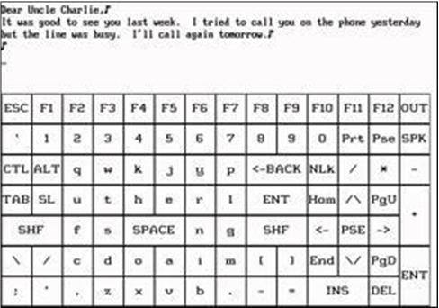 The Read Text Program allows the user to select text for display and to “turn pages” with his eyes. Any ASCII format text can be loaded for the user to access. Books on floppy disk are available from Services for the Blind.
